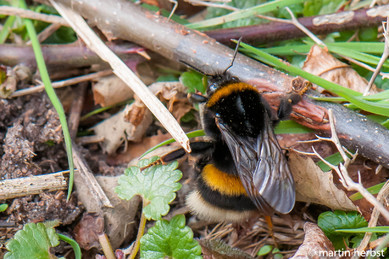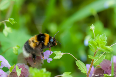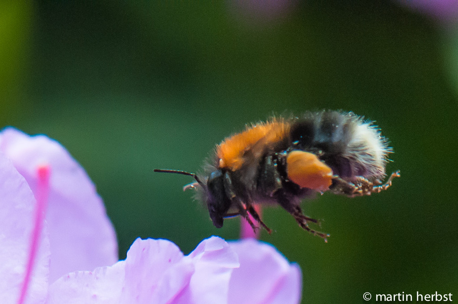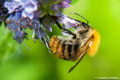 Der Erdhummel sehr ähnlich, mit schwarzem Körper, weißem Popo aber 3 gelben Binden: Das ist die Gartenhummel. Ohne Kamera ist sie in freier Natur wegen ihrer Ähnlichkeit mit der Erdhummel nur recht schwer zu identifizieren.